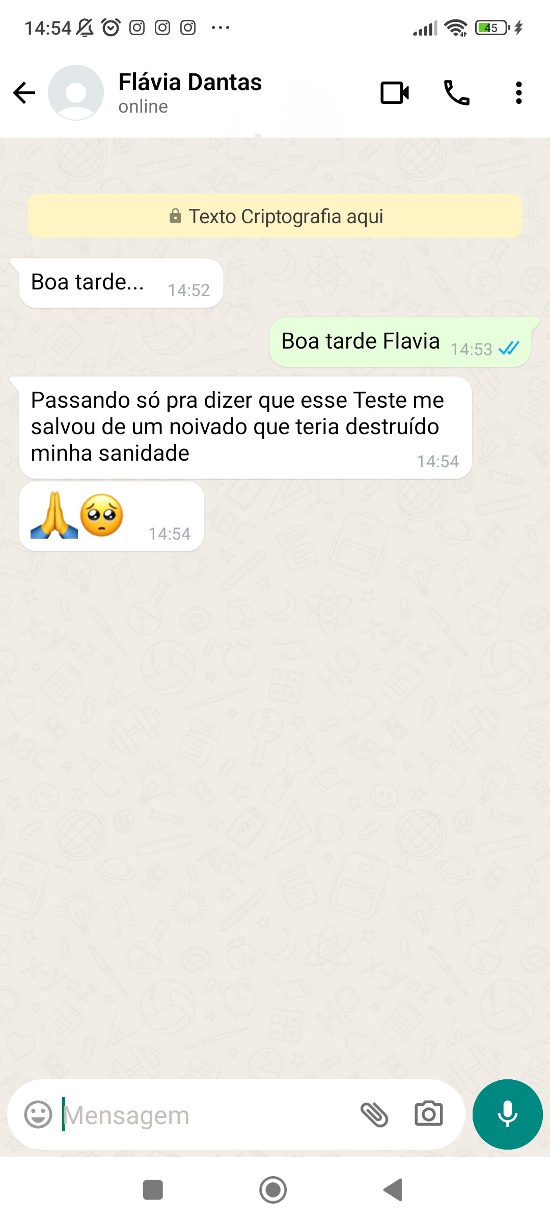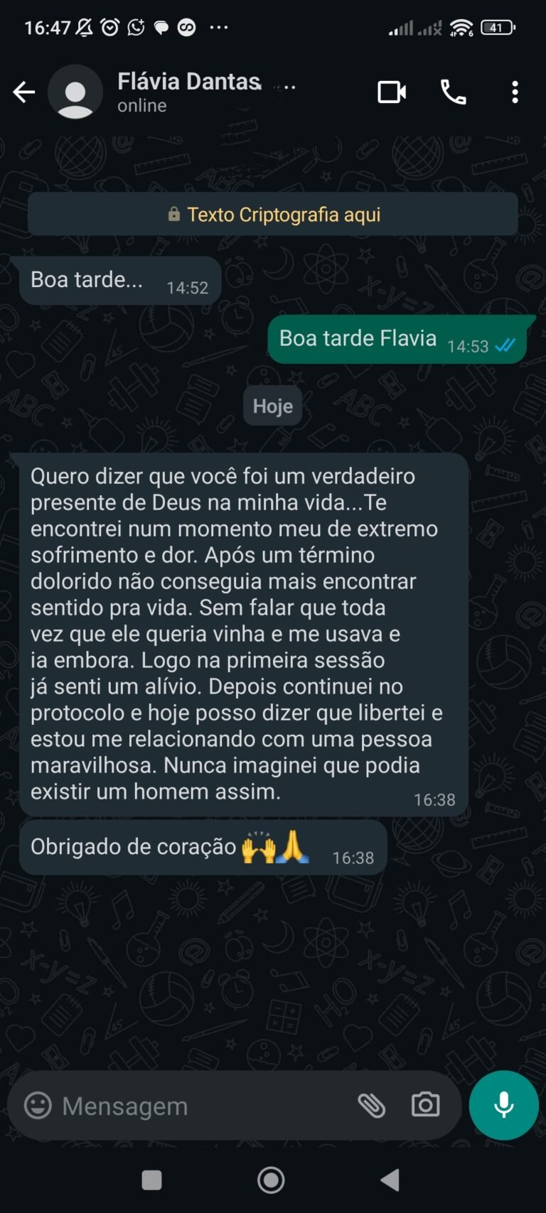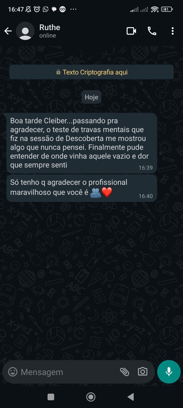 Entrarei em contato pelo Whatsapp com um breve audio e encaminharei o "Teste de Travas Mentais" explicando como responder de forma prática e fácil pelo celular mesmo.